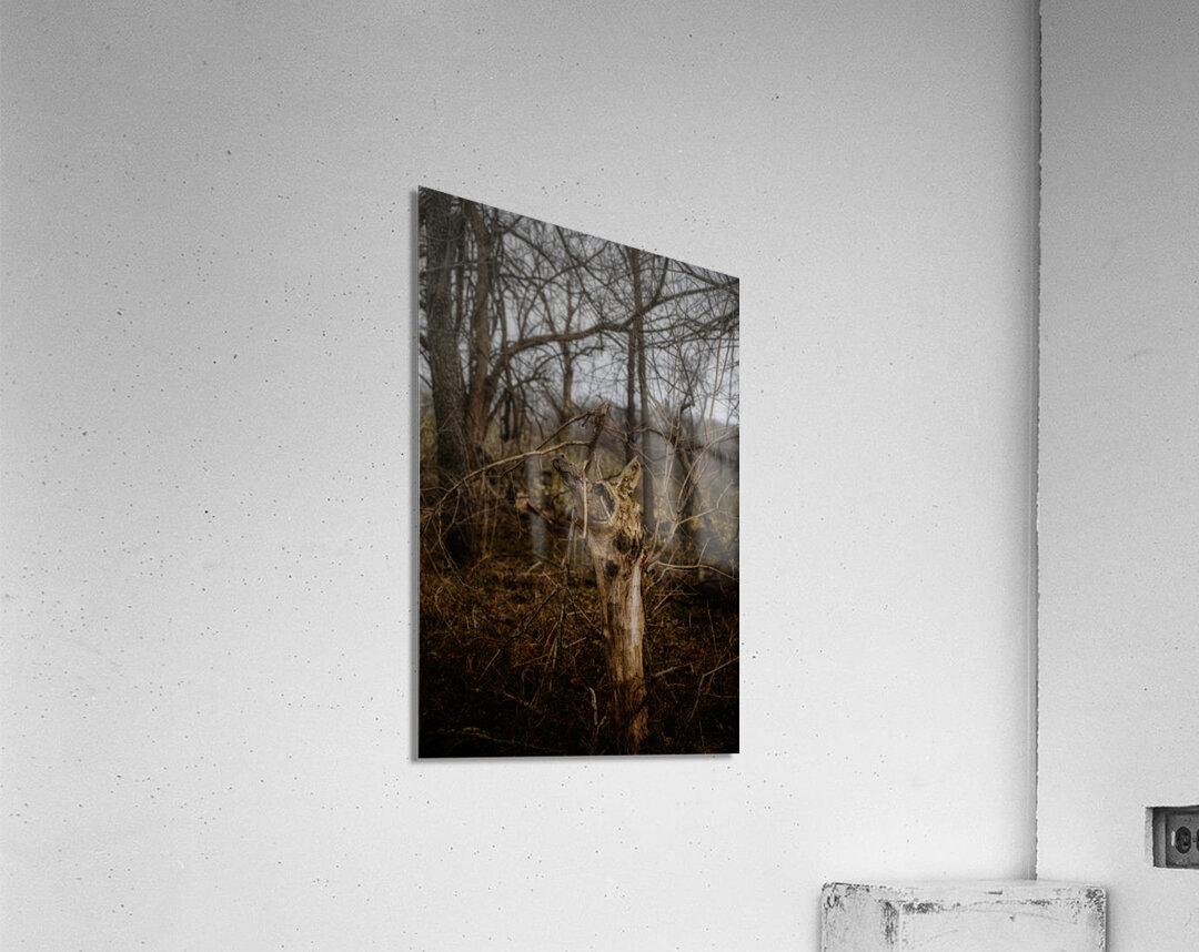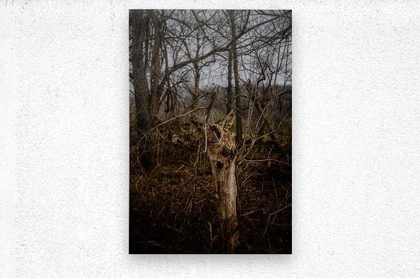 In the depths of winter's embrace, this weathered sentinel stands as nature's own sculpture. Each hollow and gnarled branch tells a story of transformation, while the moody atmosphere weaves mystery through this intimate forest scene. The subtle interplay of light and shadow reveals textures that seem almost otherworldly, transforming this woodland moment into a meditation on nature's endless cycle of decay and rebirth. Part of the 'Serenade of Light' collection, this image invites viewers to discover the raw poetry in nature's overlooked artistry.