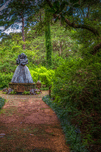 In the historic Elizabethan Gardens of Manteo, where English heritage blooms in Carolina soil, I discovered this moment where past and present merge in quiet dignity. The bronze statue of Queen Elizabeth I stands in regal solitude, her permanent court held in a theater of living green. The scene unfolds like a page from a Tudor garden book brought to life on North Carolina's shores. The statue, weathered to a noble patina, commands her garden realm while ivy and native flora create nature's own tapestry around her. The path leading to this royal presence seems to tell stories of both Old World formality and New World wilderness, each step drawing visitors deeper into this unique blend of English garden tradition and coastal Carolina charm. Some say gardens hold memories of all who've walked their paths. On this day in the Elizabethan Gardens, as sunshine filtered through ancient live oaks and cast gentle shadows across the Queen's likeness, I witnessed that truth. This isn't just a garden statue - it's a bridge between continents and centuries, where English garden design meets Southern hospitality in a dance of cultural heritage.
