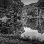 In the stillness of Caledonia Pond, Pennsylvania's woodland creates a flawless reflection, where every tree finds its twin in peaceful waters. Through monochromatic artistry, this capture reveals nature's own meditation on symmetry, where the boundary between reality and reflection becomes beautifully unclear. The scene transforms a quiet pond into a portal of contemplation, inviting viewers to pause and witness the perfect dialogue between sky, trees, and water.