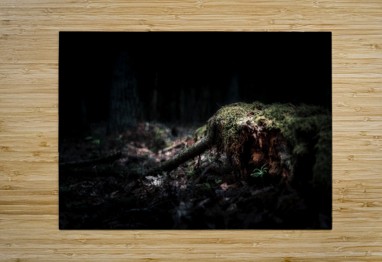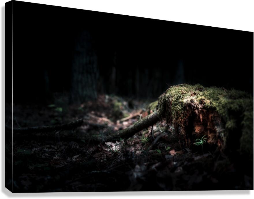 In the realm where shadows converse with the light, "Veil of Quiet Elegance" reveals a hidden sanctuary within a forest's heart. The photograph captures a dimly lit scene where a fallen tree trunk, shrouded in moss, rests in tranquil repose. Rich browns meld seamlessly with deep greens, where delicate fronds of moss cling tenaciously to the rugged bark, each surface a tactile testament to time's quiet passage. An enigmatic light filters through the canopy, casting an ethereal glow that dances across the decaying wood. The mood is one of serene solemnity, a haunting yet harmonious symphony of textures that beckons the viewer into an intimate communion with the untamed beauty of the wilderness. The atmospheric depth created by the interplay of light and shadow serves as an invitation into a world where solitude whispers its ancient secrets. The photograph evokes a mystic solitude, an almost sacred pause amidst the ceaseless march of the natural world. It invites contemplation and reverie, a soul-stirring encounter with nature's quiet allure, one that leaves the observer with a profound sense of reverence for the unseen and the overlooked. In this sanctuary of stillness, every detail speaks the language of the forest, echoing a timeless and enigmatic elegance.