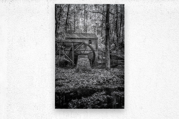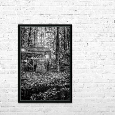 Step into a world where time stands still, where the whispers of a bygone era echo through the rustling leaves of the forest. A black and white photograph captures the enchanting scene of an ancient mill, its weathered wooden structure bathed in the gentle light filtering through the canopy above. The imposing waterwheel stands as a silent sentinel, a testament to the power of nature harnessed by human hands. Surrounded by nature's embrace, the mill seems to blend seamlessly into its surroundings, a harmonious blend of man-made ingenuity and natural beauty. The still waters reflect the mill's image like a mirror, creating a double reality of past and present converging in a dance of light and shadow. As you gaze upon this scene, you can almost hear the stream's soft murmur, the wooden beams' creak, and the whispers of time itself. It is a place of quiet contemplation, wonder, and mystery waiting to be unraveled. Embrace the enigmatic beauty of this artwork and let your imagination soar on the wings of creativity and inspiration. With its timeless charm and captivating aura, this photograph will evoke nostalgia and wanderlust in viewers. Its intricate details and unique composition make it a perfect addition to any art collection, adding a touch of history and intrigue.