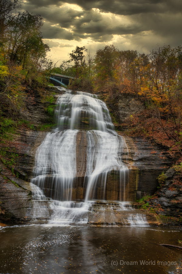 Stormy clouds over Shequaga falls in New York Near Watkins Glen