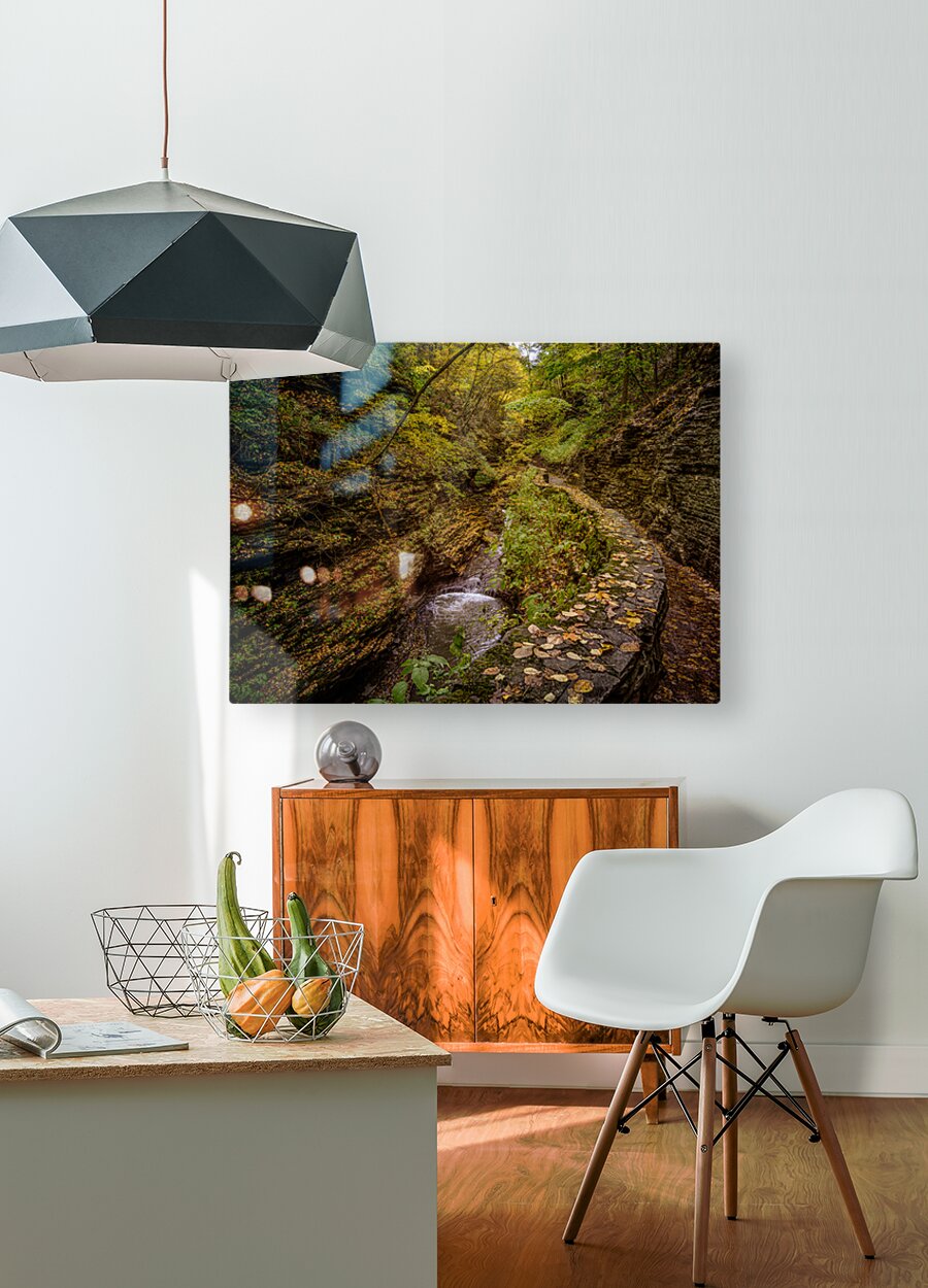 An Early Fall View in Watkins Glen State Park New York I wandered through the gorge as autumn's first whispers began to paint the canyon walls, where nature's grand amphitheater revealed its seasonal transformation through my infrared lens. The early fall light danced differently here, catching the subtle shift from summer's deep greens to the emerging copper and gold that would soon cascade down the towering stone faces. Each carved ledge and weathered outcrop told stories of countless seasons past, while the ever-present stream below continued its ancient song, indifferent to time's passage. The infrared realm transformed this moment into something beyond mere photography—revealing the hidden energy that pulses through rock and water, leaf and shadow. In this sacred gorge, I felt autumn's gentle arrival not just as a change of season, but as nature's quiet promise that beauty exists in every transition, every breath between what was and what is yet to come.