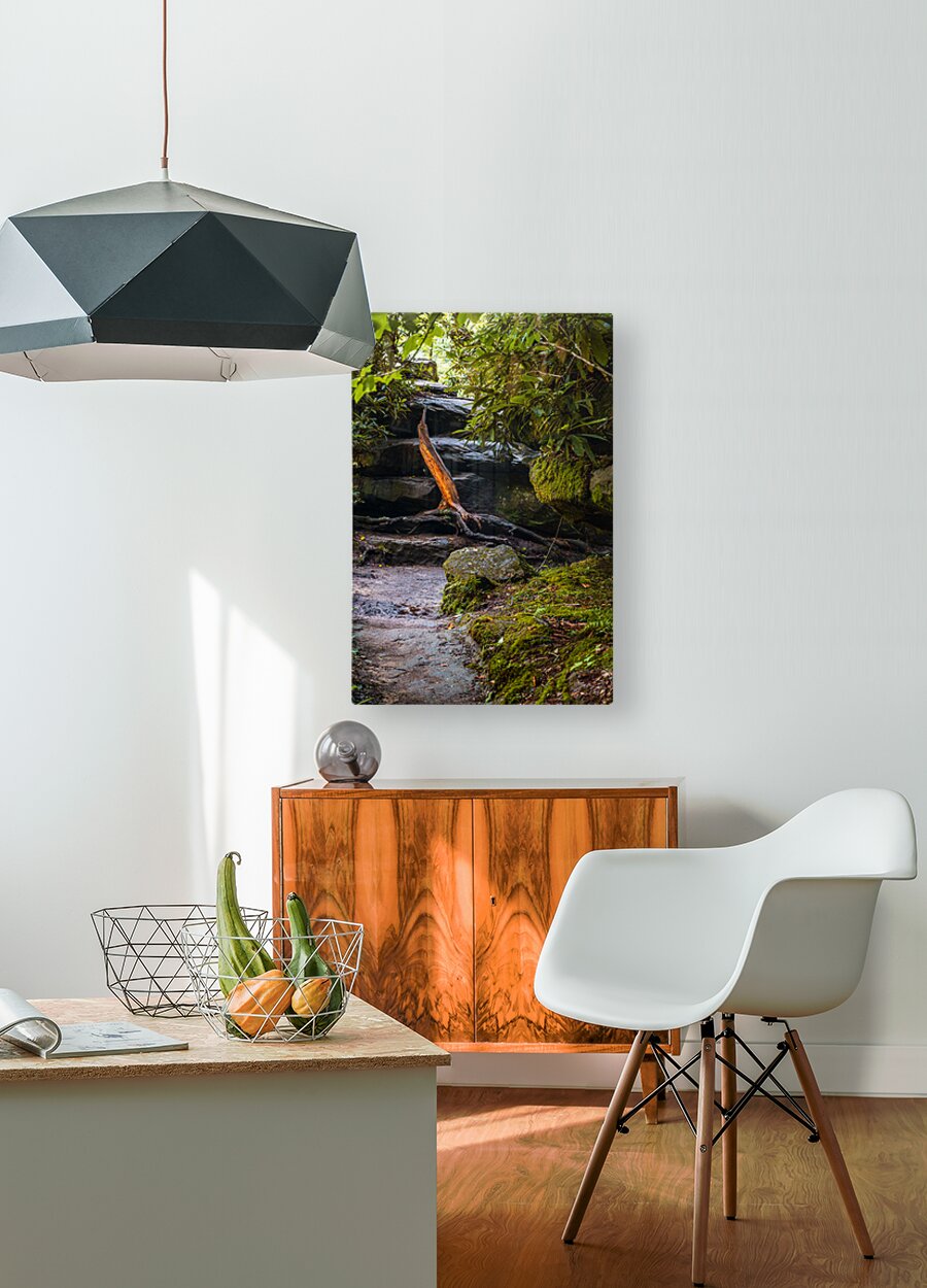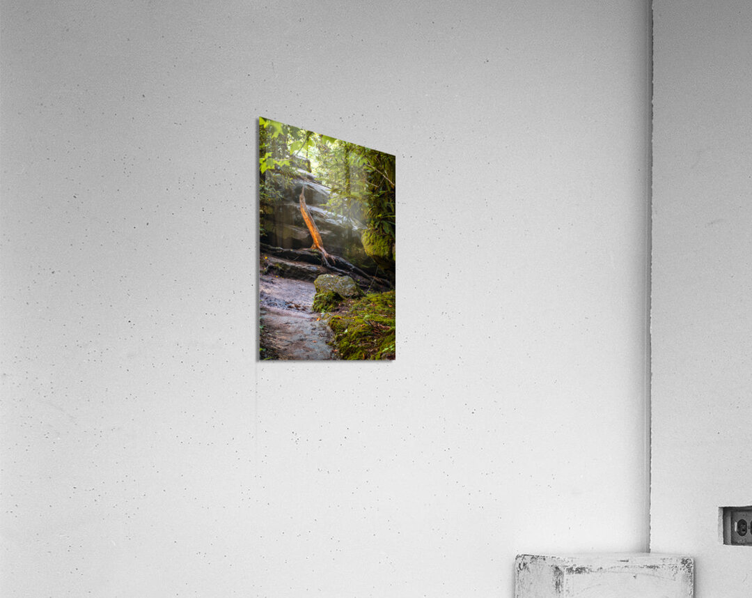 Step into a world of enchantment and wonder with this mesmerizing piece of art inspired by the natural beauty of Natural Bridge State Park in Kentucky. A mossy path reminiscent of the trails in the park winds its way through a hidden forest, leading to a charming wooden bridge spanning a gentle stream. Just like those found in Natural Bridge State Park, the rocks and boulders are covered in lush, emerald moss that beckons hikers to explore further. As the sunlight filters through the leaves, casting a warm, golden glow on the scene, hikers are transported to a place of pure serenity. Delicate ferns add a touch of whimsy, much like the native flora found along the park's trails, creating a sense of magic and tranquility that is truly captivating. Lose yourself in the beauty of this mystical landscape, where nature's beauty reigns supreme, and the enchantment of Natural Bridge State Park comes to life.
