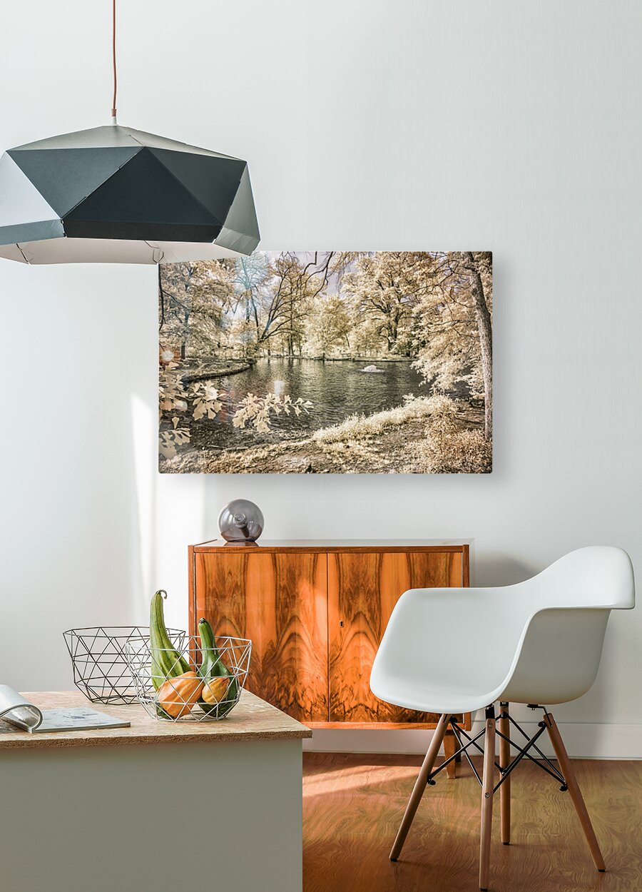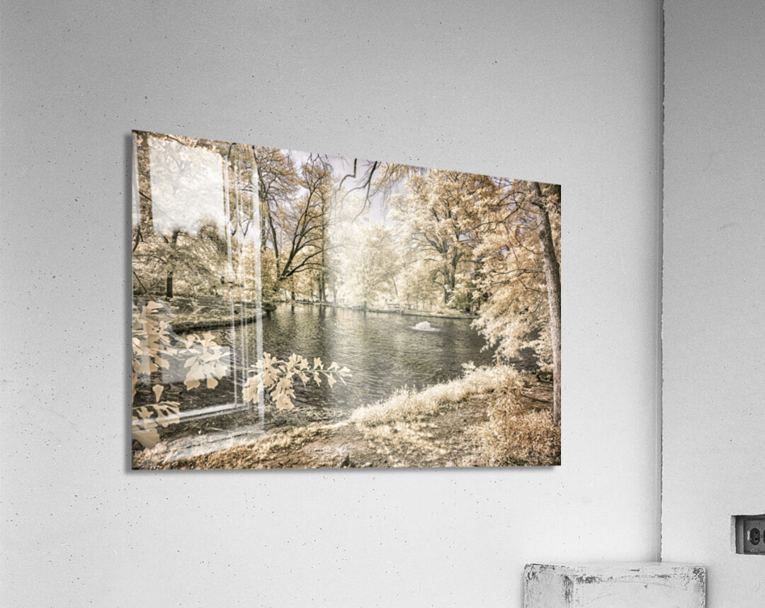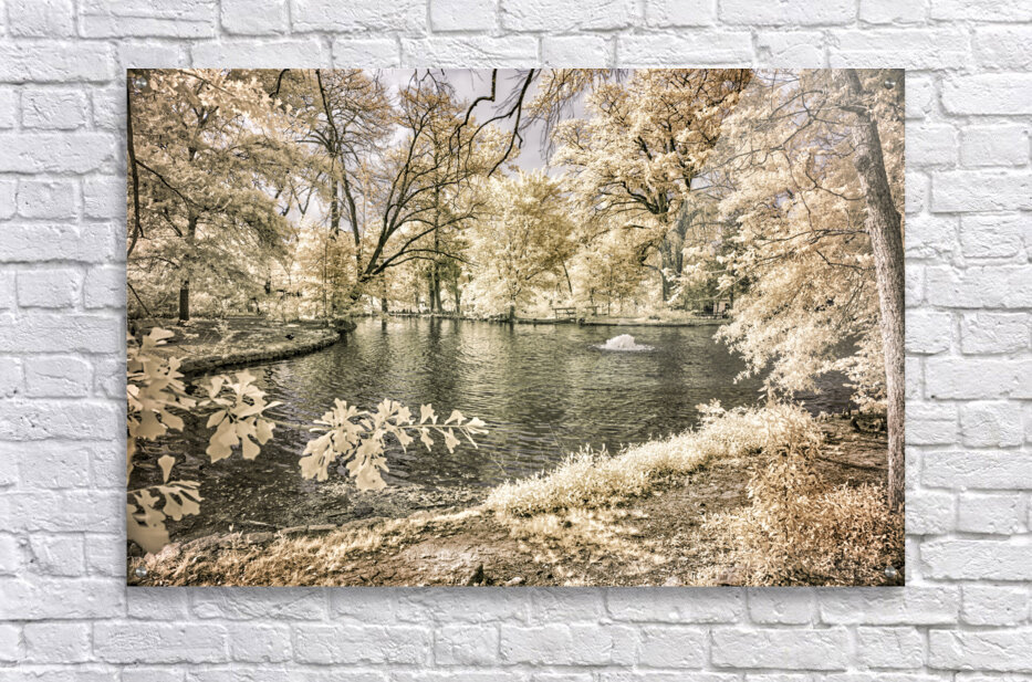 Step into a world of tranquility and serenity with "Lake Edge and Overhanging Branches: Sam Houston Site." This captivating infrared photograph transports viewers to a peaceful park scene, where a serene body of water reflects the lush greenery that envelops it. The gentle ripples created by a fountain add a touch of magic to the landscape. At the same time, the overhanging branches contribute to the scene's mysterious and enigmatic ambiance. As the light dances across the landscape, casting a soft glow on every leaf and branch, viewers are beckoned to immerse themselves in the beauty of nature's embrace. This artwork serves as a portal to a realm of quiet contemplation, offering a brief respite from the chaos of everyday life. Whether displayed in a home or office, "Lake Edge and Overhanging Branches: Sam Houston Site" provides a visual escape to a harmonious sanctuary. Enhance your space with this enchanting artwork that captures the essence of peaceful park scenery. With its calming atmosphere and captivating details, this piece is perfect for those seeking a moment of tranquility amidst their busy lives. Don't miss the opportunity to bring a touch of nature's beauty into your space with "Lake Edge and Overhanging Branches: Sam Houston Site."