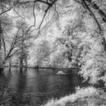 Step into a world where nature and tranquility coalesce in perfect harmony. A timeless oasis captured in stunning detail through the lens of an artist's eye. The ethereal tones of infrared black and white create a dreamlike quality, drawing the viewer into a realm of serene beauty. Trees reach towards the heavens, their leaves dancing in the play of light and shadow. A placid body of water reflects the world around it, inviting contemplation and reflection. The intricate details of each branch and leaf speak to the interconnectedness of all life, highlighting the delicate balance of nature. This captivating artwork, set in the serene surroundings of Sam Houston Park, showcases the artist's unique perspective on the beauty of the natural world. Focusing on the intricate details of the flora and fauna that call this park home, the artwork invites the viewer to pause, breathe, and immerse themselves in the peaceful serenity of their surroundings.