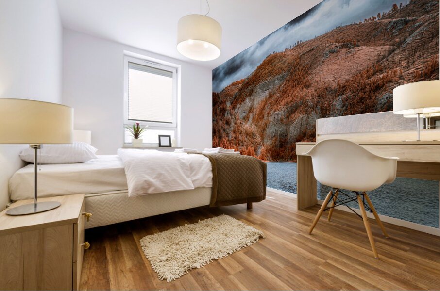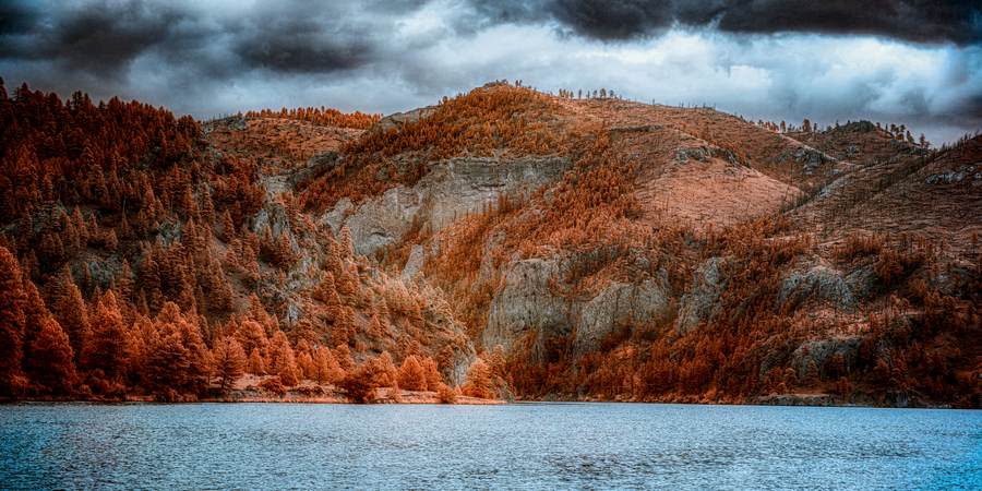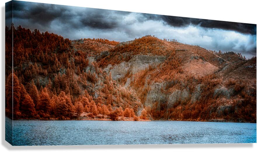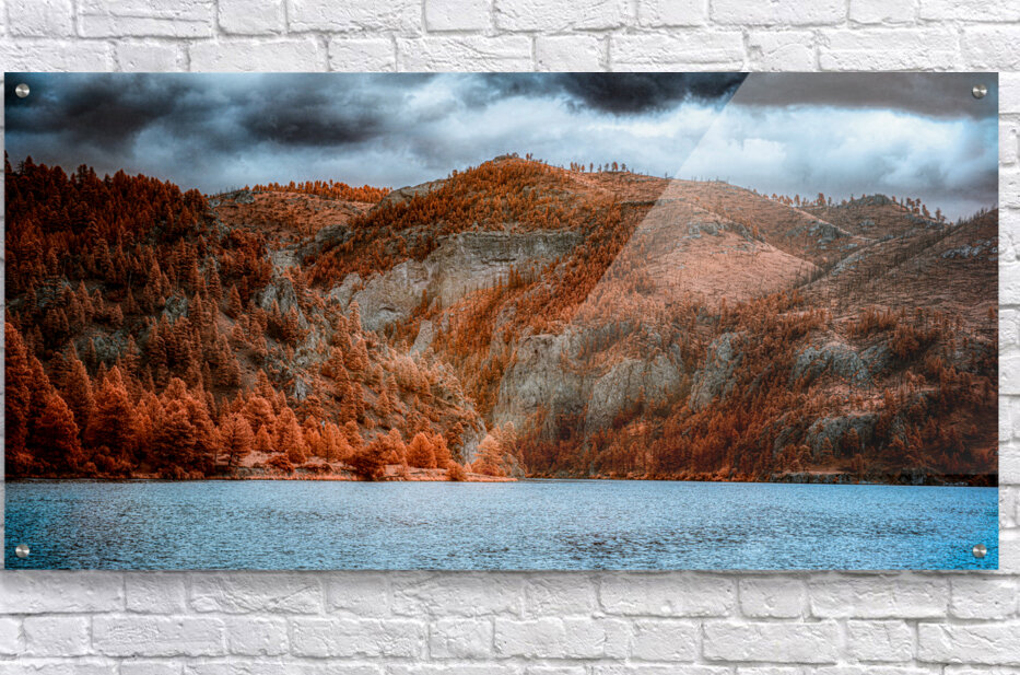 Embark on a journey through the mystical mountain gateway that serves as the entrance to The Gates of The Mountain in Montana, where nature's majesty unfolds in a breathtaking display of tranquility and grandeur. As you traverse the tranquil waters that mirror the rust and orange hues of the forested slopes, you'll find yourself mesmerized by the dramatic rise of the mountains from the opposite bank. The forested slopes, adorned with a tapestry of autumnal colors, create a striking contrast against the barren mountain ridges that undulate in the distance. Against the backdrop of stormy skies, the landscape takes on an otherworldly aura, simultaneously serene and slightly ominous, inviting solitude and contemplation. This scene's rich textures and unusual color palette evoke a sense of artistic manipulation and surreal beauty, drawing you deeper into the enigmatic artwork. Every brushstroke of nature's hand paints a picture of awe-inspiring beauty, beckoning you to lose yourself in the mountains' magic and explore this mesmerizing gateway's depths. As you journey through The Gates of The Mountain, allow yourself to be enveloped by the mystique of the landscape, where time seems to stand still and the boundaries between reality and fantasy blur. Whether you're a seasoned adventurer or a seeker of tranquility, this ethereal landscape promises to captivate your senses and leave an indelible mark on your soul. So venture forth and let the mountains whisper their secrets as you traverse the mystical gateway to a world of wonder and enchantment. The Gates of The Mountain await, ready to unveil their timeless beauty and invite you on an unforgettable odyssey through nature's most magnificent masterpiece.