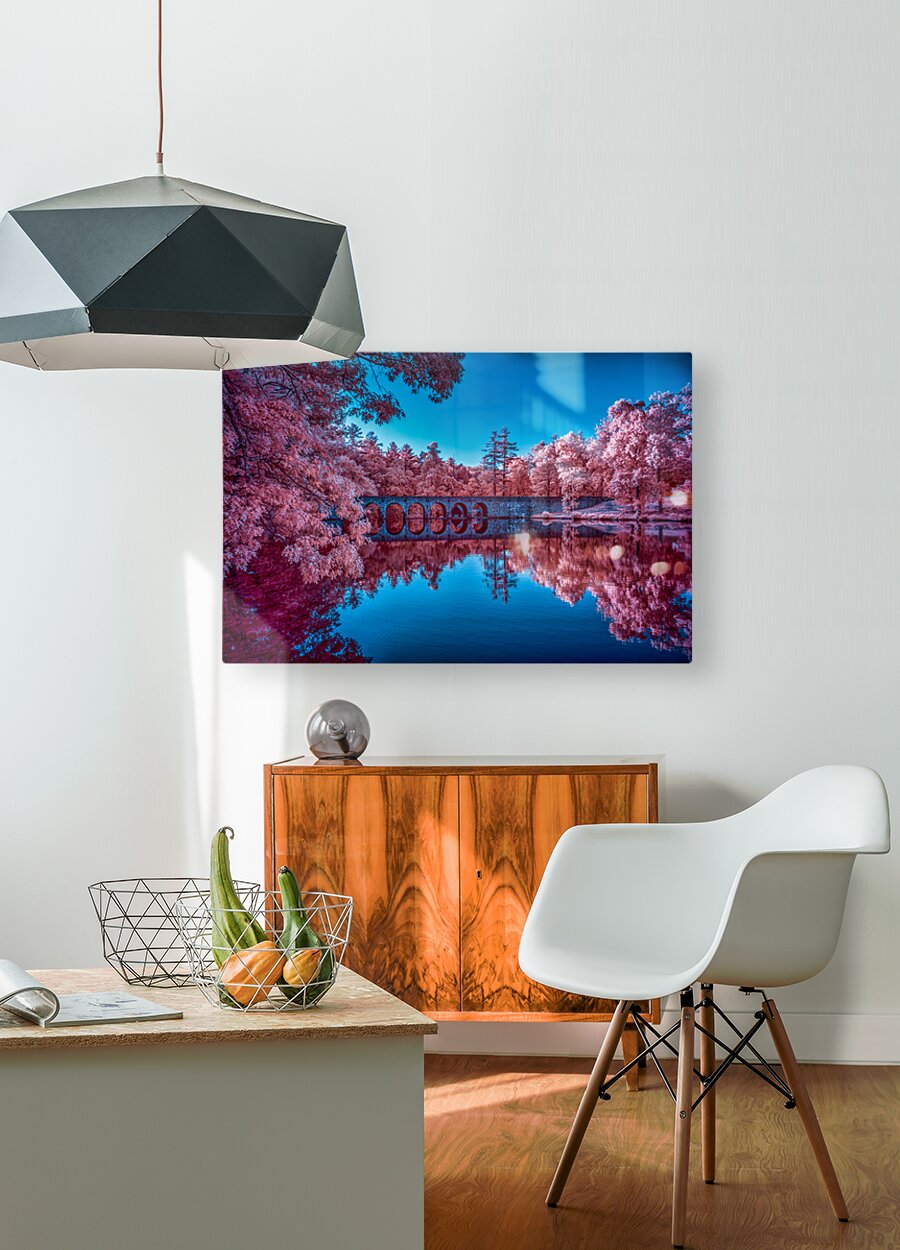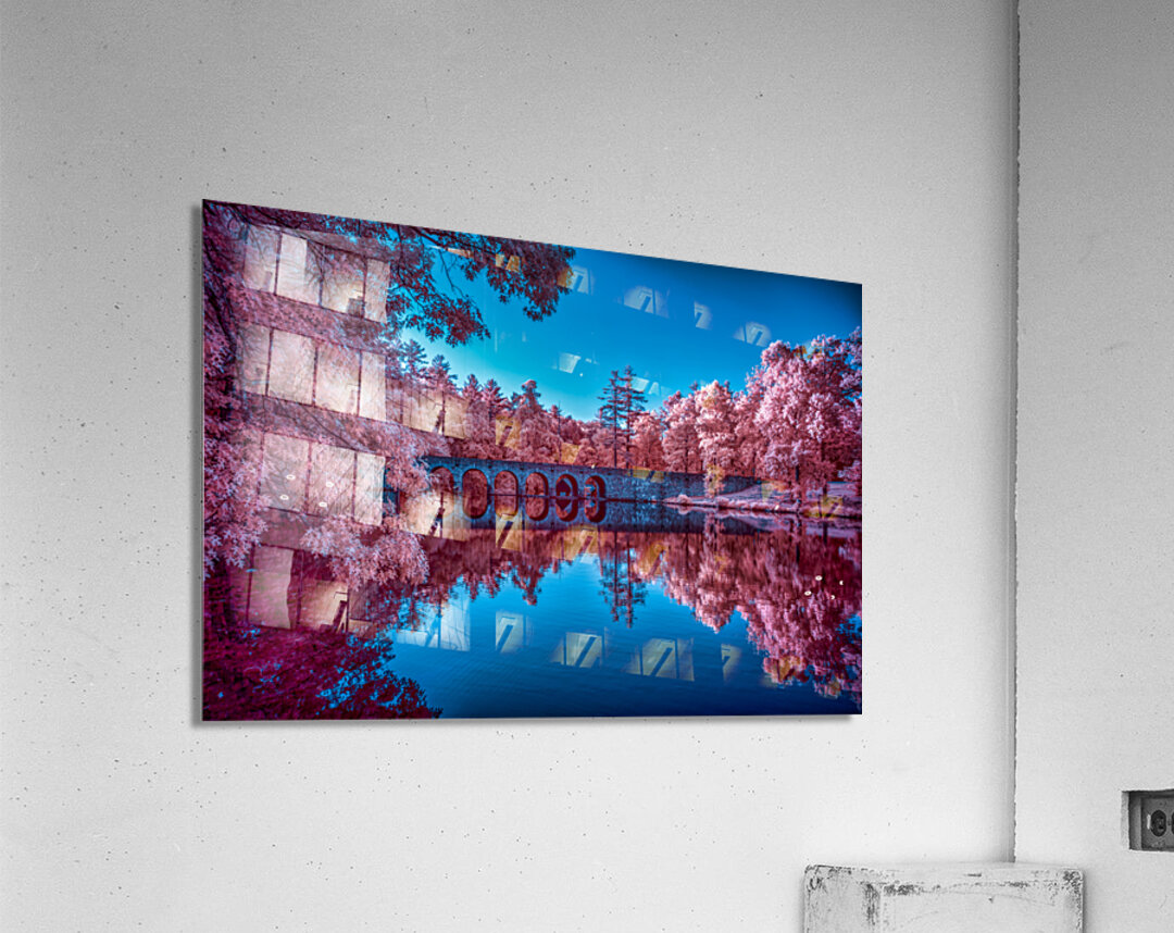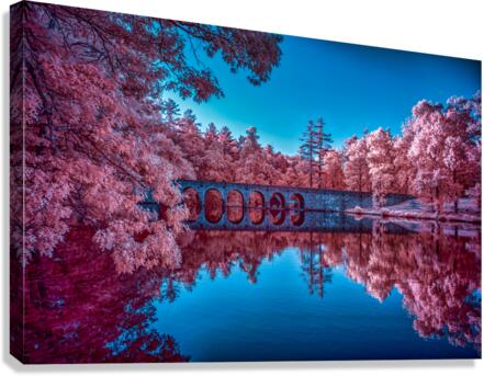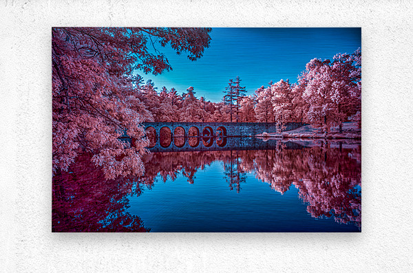 Embark on a vibrant journey through Cumberland Mountain State Park in Tennessee, where nature's palette transforms an ordinary stroll into a magical escapade. The color infrared image unfolds as a stone bridge gracefully spans a serene lake, a reflection of tranquility mirrored beneath its arches. The trees, bathed in enchanting pink hues, create a surreal symphony against the azure blue sky. Captured during a leisurely walk around the lake with my wife and our pup Cooper, the scene exudes a tranquil charm that envelops the senses. As we crossed the stone bridge, the vibrant colors of the infrared spectrum brought the landscape to life in a way that transcended the ordinary. The pink trees, a testament to the park's natural beauty, cast a captivating reflection in the lake, creating a mesmerizing dance of colors. This color infrared image narrates more than just a picturesque scene; it tells a story of a peaceful afternoon spent in the heart of Cumberland Mountain State Park. As Cooper wagged his tail in joy, the stone bridge became a symbolic gateway to a world where nature and companionship merge in a harmonious blend of serenity and vibrant beauty.