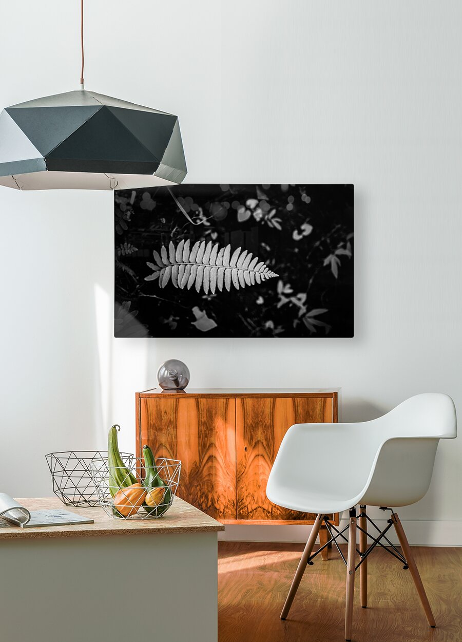 Step into a world of ethereal beauty with "Fern Elegance," a captivating black and white photograph that captures the essence of nature's intricate patterns. A single symmetrical fern leaf, delicately placed in the center, draws the viewer in with its mesmerizing texture and detail. Surrounded by a mysterious darkness that only serves to enhance its elegance, this artwork exudes a sense of mystique and enchantment. Allow yourself to be mesmerized by the beauty of the natural world as you delve into the depths of this enigmatic creation.