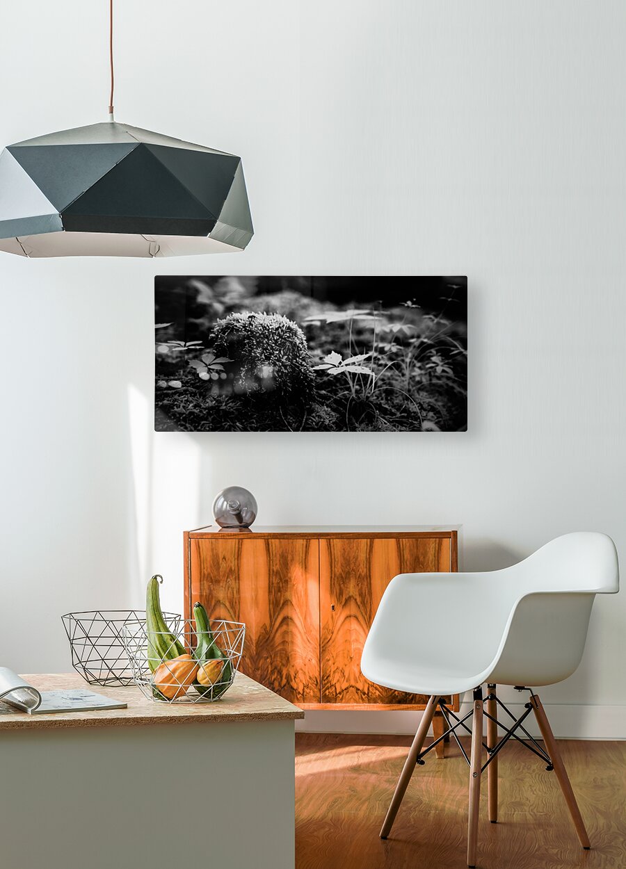 Step into the enchanting world of Mossy Whispers. This captivating black-and-white photograph transports you to a realm of ethereal beauty and natural