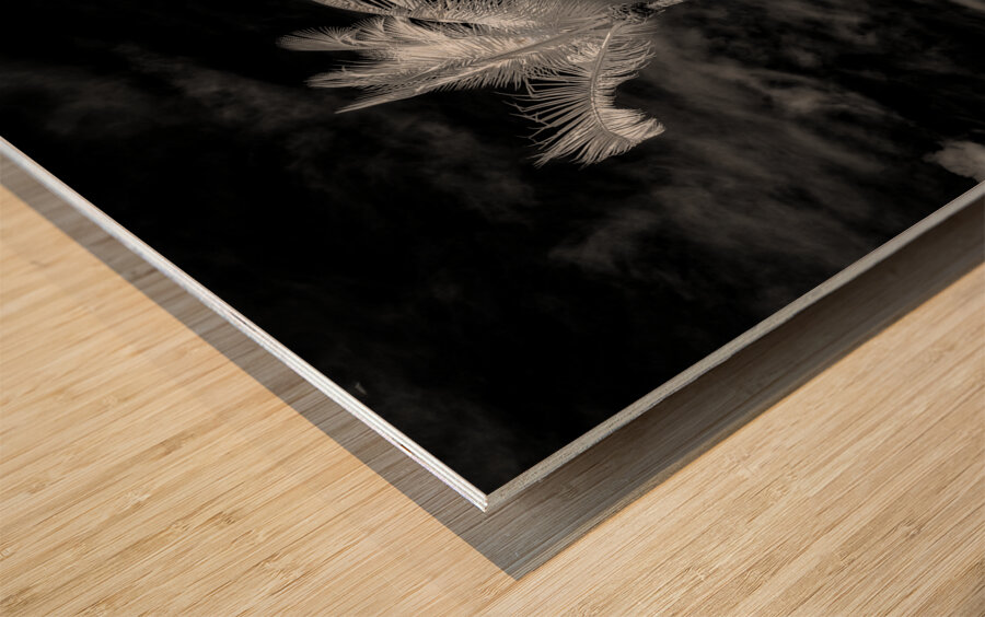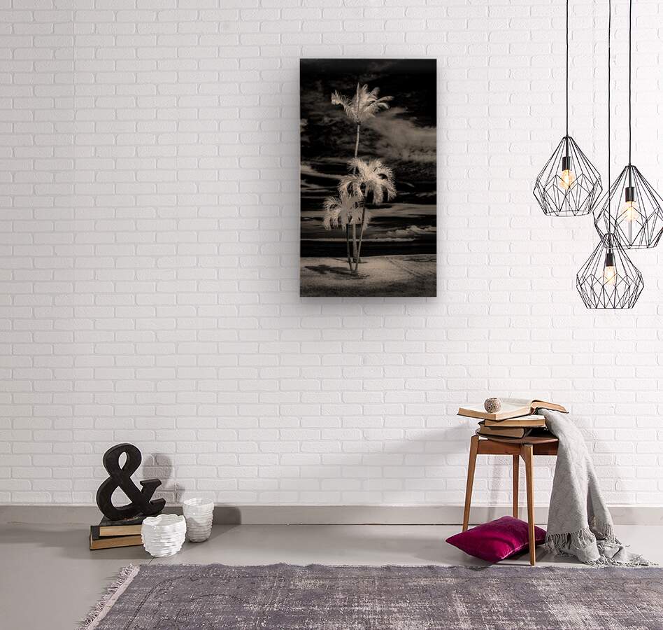 Discover the captivating beauty of the Texture of the Tropics. This infrared black-and-white photograph transports you to a serene tropical paradise. The finely detailed palm trees stand out against the textured sky and ground, creating a stunning contrast of light and shadow. The composition evokes a sense of peace and tranquility as the horizon line fades into a calm sea or body of water. This artwork showcases the artist's skill in capturing the essence of nature through an infrared photography technique, highlighting the luminous quality of the palm fronds. Immerse yourself in the beauty of the Texture of the Tropics and bring a touch of tropical elegance to your space.