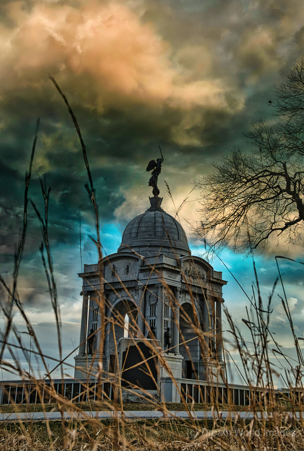 ABOUT THIS ARTWORK: STORMS OF REMEMBRANCE: AN OMINOUS STORM OVER THE PENNSYLVANIA MONUMENT IN GETTYSBURG