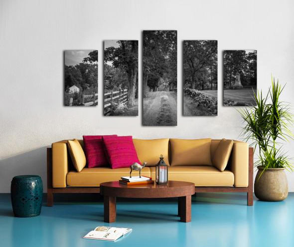 As the morning sun begins to cast its golden light across the Gettysburg battlefield, a serene scene unfolds along a quiet farm lane. The gravel path, worn smooth by years of use, winds its way through the countryside, flanked by weathered wooden fences and a sturdy stacked stone wall. Towering trees arch overhead, their branches forming a natural canopy that dapples the ground below with patches of sunlight and shadow. Walking along the path, one ca n almost feel the weight of history in the air. This was no ordinary farm lane; it was a lifeline for those who lived and worked on the land during the tumultuous days of the Civil War. Each step taken here is a step back in time, a journey into the past where the echoes of history still linger. In the distance, a grassy clearing opens up, adorned with a humble historical marker or monument. Perhaps it commemorates a significant event that took place on this very spot during the battle—a moment frozen in time, forever etched into the landscape. The black-and-white photography captures the essence of this timeless scene, evoking a sense of nostalgia and reverence for the past. The monochromatic tones lend a classic elegance to the composition, highlighting the simplicity and beauty of the rural landscape. "Path of Serenity: A Gettysburg Farmlane" invites the viewer to step off the beaten path and into a world where time seems to stand still. It is a reminder of the enduring power of nature to soothe the soul and a testament to the resilience of those who walked these fields before us.
