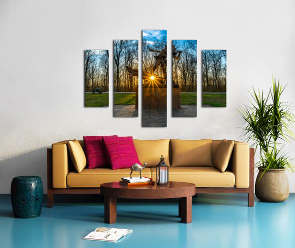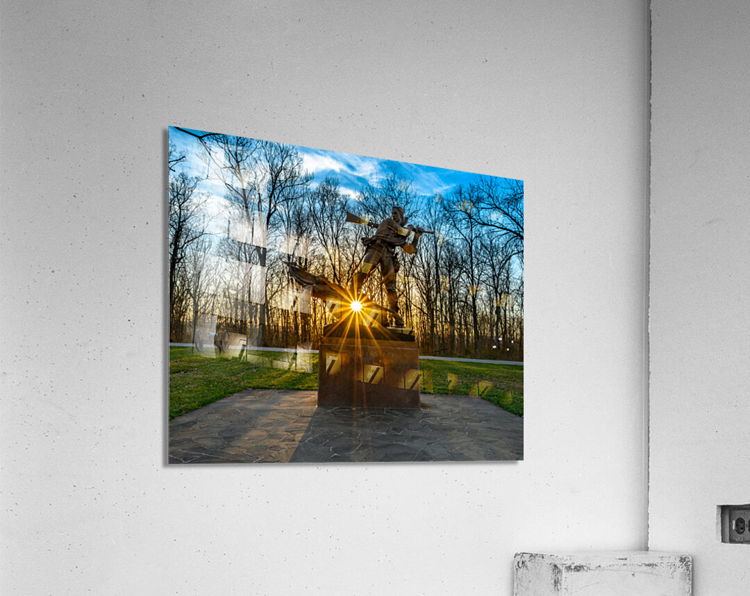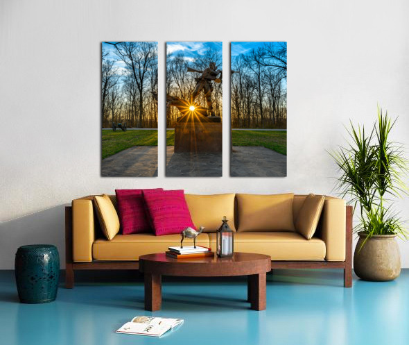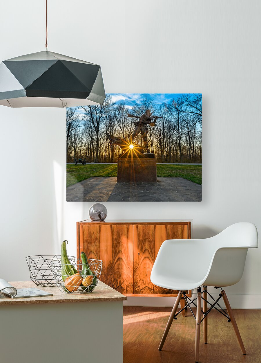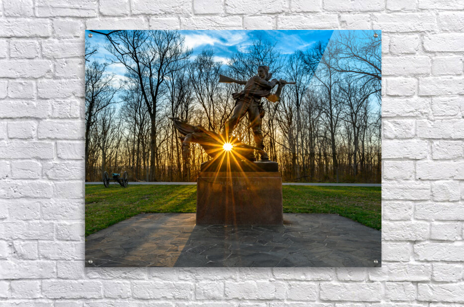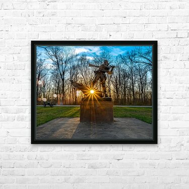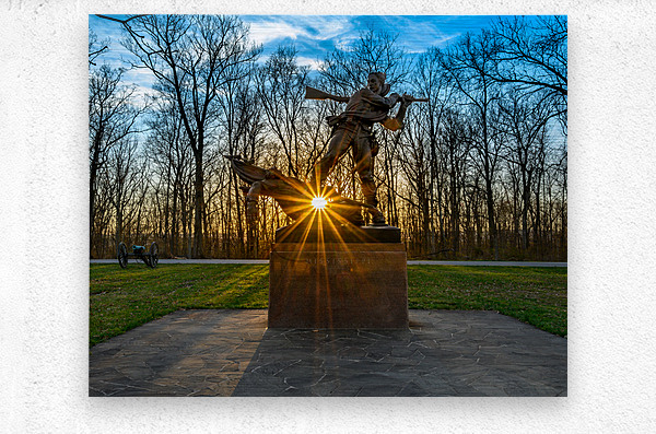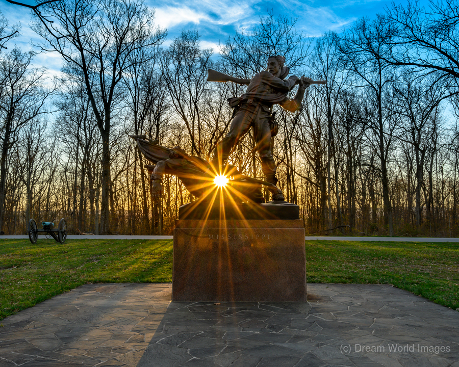 In the tranquil setting of Gettysburg, as the sun descended below the horizon on an early April evening, I stood before the majestic Mississippi monument. Known as "Sunset Warrior," this monument was a striking tribute to courage and valor, standing tall against the backdrop of a dramatic sunset. Crafted from bronze, the monument depicted a dynamic scene of a warrior in motion, his figure illuminated by the fiery hues of the setting sun. Every detail of the sculpture exuded power and intensity, from the determined expression on the warrior's face to the commanding stance of his body. As I gazed up at the statue, I couldn't help but feel a sense of awe wash over me. The outstretched arm holding a sword and the bent elbow of the other arm enhanced the sense of movement as if the warrior were ready to spring into action at any moment. Against the vibrant sunset backdrop, the statue cast a dramatic silhouette, its contours highlighted against the fiery sky. The simplicity of the base support only served to amplify the monument's forceful presence, drawing the viewer's attention to the warrior's fierce demeanor. At that moment, I felt transported back in time, witnessing a potential battle unfold before me. The emotion conveyed through the statue's design and form was palpable, stirring something deep within my soul. As the last rays of sunlight faded from the sky, I took one last look at the Sunset Warrior, feeling a renewed admiration for those who had fought bravely on the battlefield. It was a testament to the enduring spirit of courage and resilience. It stood as a beacon of hope for future generations.