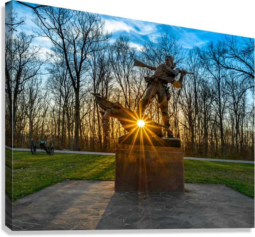 Get this artwork "Sunset Warrior: Mississippi At Gettysburg" in a framed print.