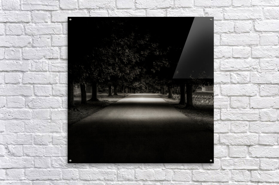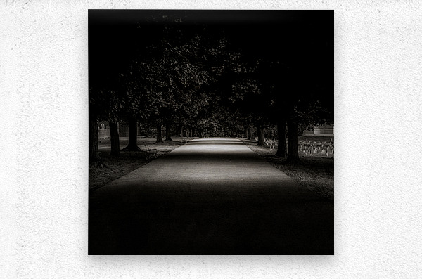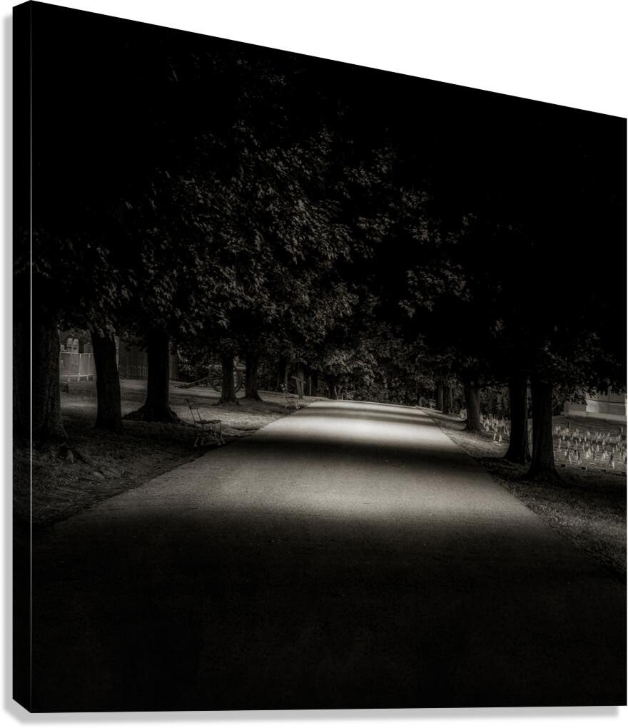 Step into a world of mystery and contemplation as you walk the solemn path through the National Cemetery in Gettysburg. The Avenue of Contemplation, a monochromatic scene of a shaded avenue flanked by majestic trees, beckons you to explore its depths. The diffused light filtering through the canopy creates a sense of tranquility. At the same time, the play of shadow and illumination adds a touch of enigmatic allure. As you follow the pathway, bathed in light, towards the vanishing point, you can't help but feel a wave of emotions. The hallowed grounds of the cemetery evoke feelings of humility, sadness, reverence, and awe for the brave souls who fought and perished during the Battle of Gettysburg. Each gravestone serves as a reminder of the sacrifices made and the lives lost during one of the bloodiest battles in American history. The serene beauty of the avenue is juxtaposed with the weight of history and the solemnity of the moment. Darkness and light dance in harmony to create a mesmerizing and mystical atmosphere as you reflect on the impact of the events that transpired on this sacred ground. Walking through the National Cemetery in Gettysburg is a visual journey that stirs the soul and awakens the senses, leaving you with a deep gratitude and respect for those who came before us. It is a place where the past and present converge, where we can pay our respects and honor the memory of those who made the ultimate sacrifice for our freedom. The Avenue of Contemplation is not just a pathway but a powerful symbol of remembrance and reflection.