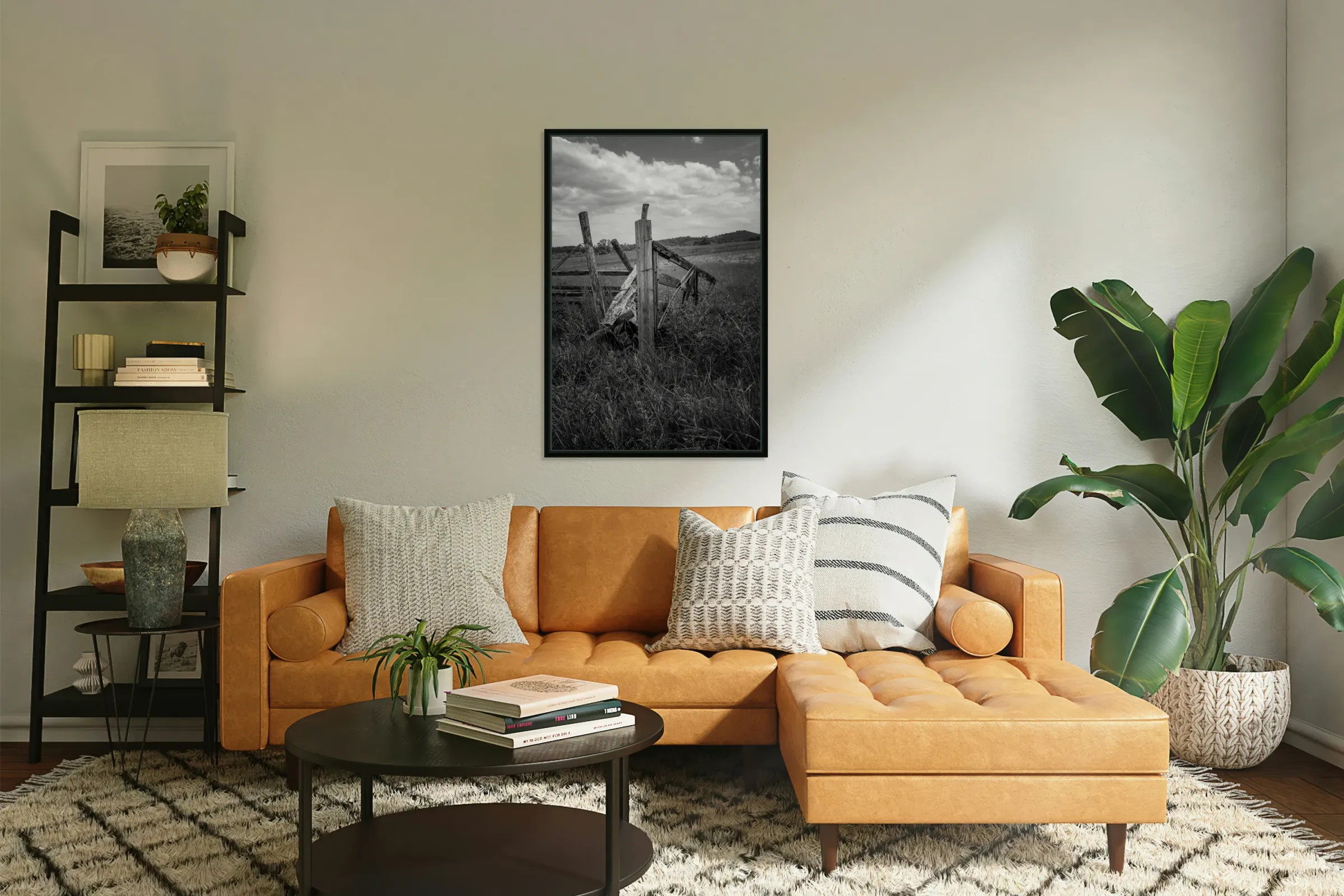 Where weathered posts stand guard over rolling meadows, time writes its story in splintered wood and wild grass. This black and white study captures t...[+]