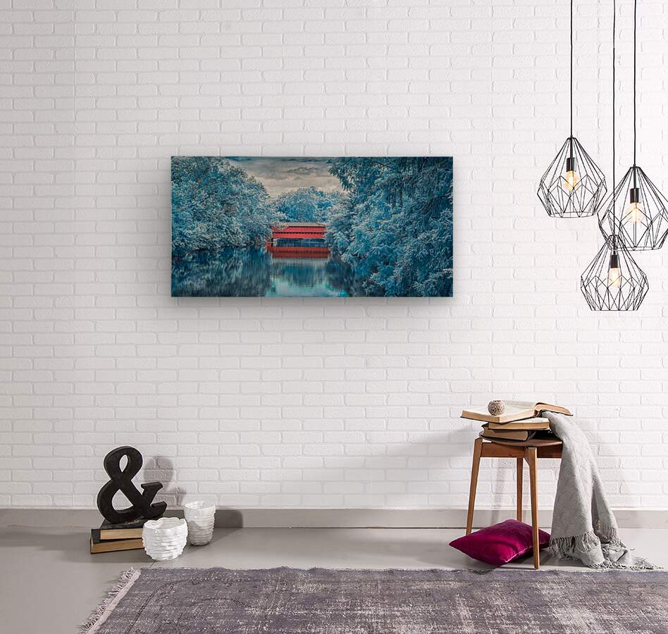 Sachs Bridge: Reflective Tranquility in Infrared  Wood print