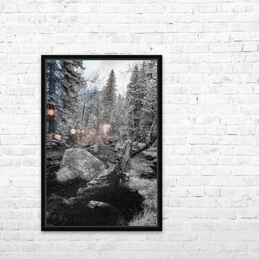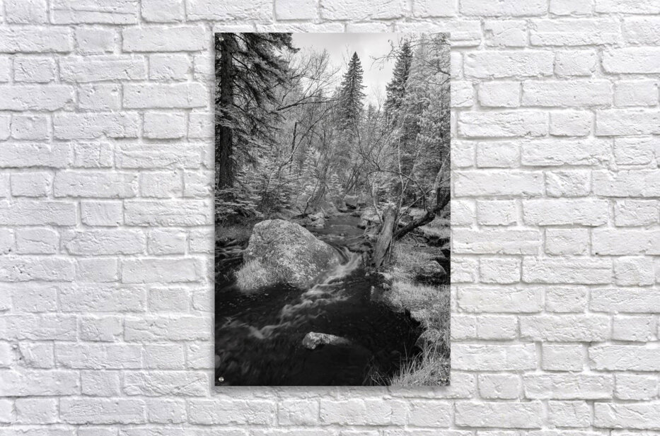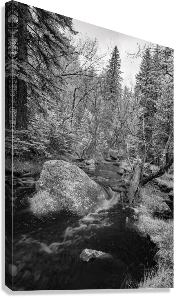 Get this artwork "Monochromatic Serenity: Exploring Grace Coolidge Creek in Custer - Tall" in a framed print.