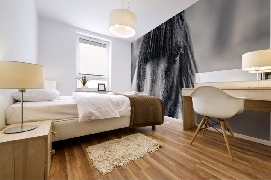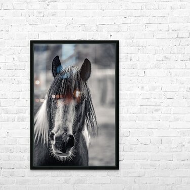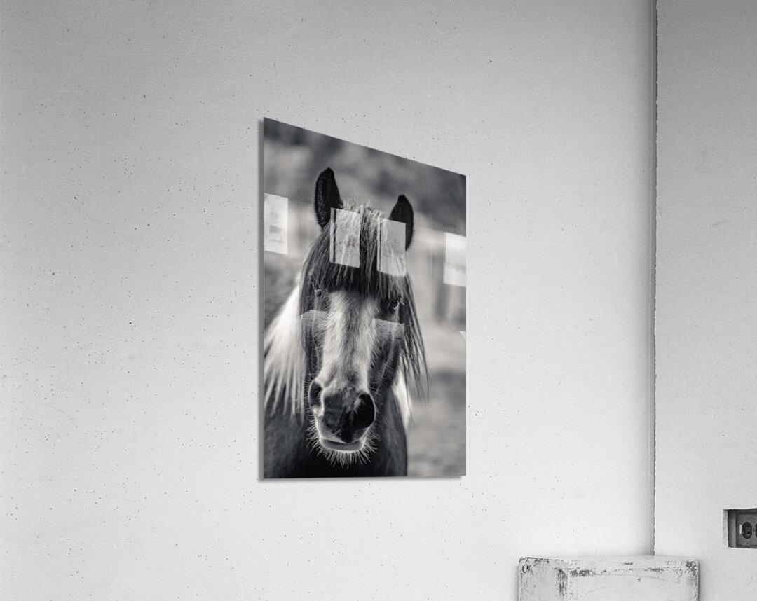 Get this artwork "Curious Gaze: A Captivating Encounter with a Silent Horse " in a framed print.