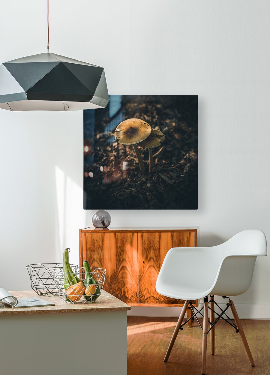 Mystical Fungi: Guardian Shroom by the Forest Path Wood print