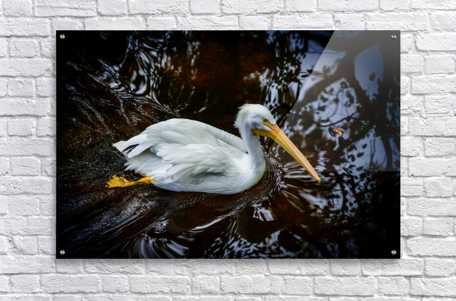 Get this artwork "Florida Serenity: A Pelican Making Soft Waves" in a framed print.