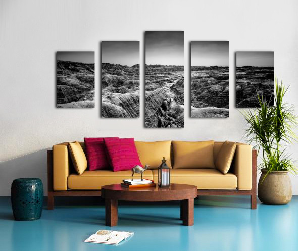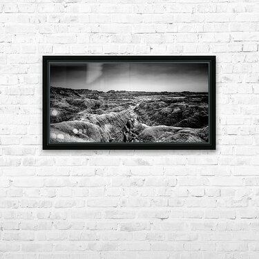 Get this artwork "Shadows of the Earth: Contours of Time in the Badlands" in a framed print.