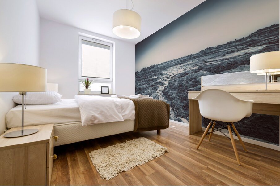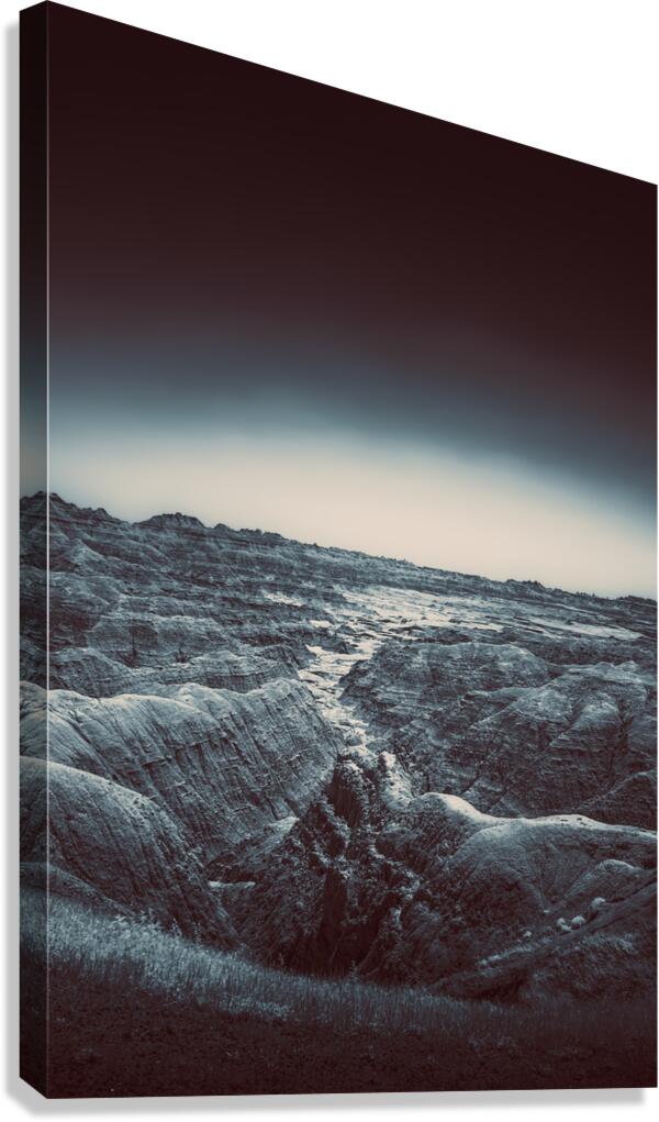In the heart of the captivating Badlands of South Dakota lies a mystical locale known as the White River. Captured through the lens of infrared photography the invisible light image unfolds revealing a landscape painted in grayish blue hues and adorned with unique rock formations that resemble a meandering white river. As one delves into the scenerys vastness the rock formations ethereal qualities become apparent. The invisible light image captures the essence of the White River a mesmerizing path winding through the rocks. Flowing off the cliff the river widens in the distance inviting exploration along this enchanting and otherworldly pathway. The grayish-blue hues enhance the tranquility of the scene elevating the mystical ambiance of the Badlands. The White River brought to life in the magic of infrared stands as a captivating and unseen feature urging observers to ponder the secrets of natures artistry hidden within the invisible light. This tale of Whispers of Nature is a testament to the outdoor exploration opportunities that the Badlands of South Dakota present. The infrared enchantment with its grayish blue hues and the captivating White River beckons travelers to immerse themselves in the awe-inspiring wonders of this iconic destination where each glance unveils the whispered beauty of natures hidden pathways.