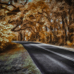 As you drive down a deserted road in the heart of Ocala Florida you cant help but feel a sense of curiosity and wonder. The thick forest that lines the edges of the road seems to be hiding secrets just out of reach beckoning you to explore its depths. Its a warm afternoon and the suns golden rays filter through the dense canopy of trees casting a dappled pattern of light and shadow on the ground. You decide to pull over and take a closer look feeling drawn to the enigmatic beauty of the scene before you. You step out of your car and walk closer to the edge of the road marveling at the intricate details of the towering trees that stand like sentinels on either side. Their branches intertwine overhead forming a natural archway that seems to lead into another world. Mesmerized by the sepia tones blending into patches of luminous yellow and cream you feel as though you have stumbled upon a hidden paradise. Every leaf and branch is meticulously detailed adding to the surreal atmosphere of the landscape. The soft diffused lighting bathes everything in a gentle glow creating a sense of peace and serenity. As you stand there lost in the beauty of this mysterious setting you feel a sudden urge to capture the moment forever. Hastily you grab your camera from the car and start snapping away trying to capture the essence of this ethereal scene before it slips away. With each click of the camera you feel a sense of fulfillment and excitement knowing that you have captured a piece of Ocalas secrets in this stunning infrared curve. You cant help but wonder what other mysteries lie hidden in the depths of these enchanting woods and you feel inspired to continue your exploration of this magical place.