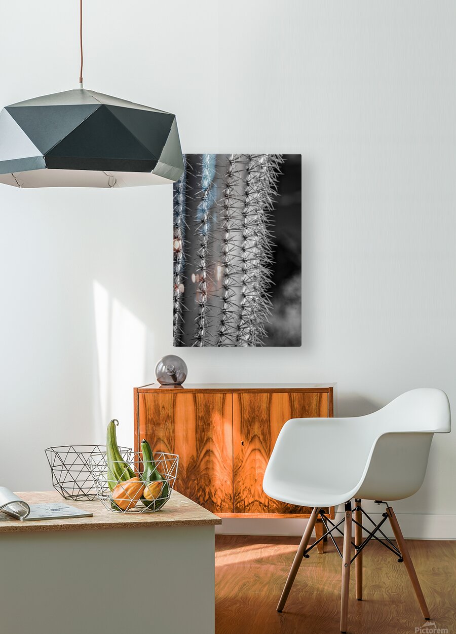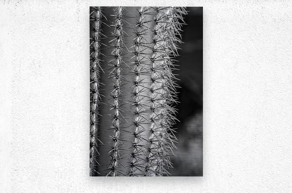 Prickly Pathway invites the viewer to traverse an enigmatic landscape where natures mysteries unfold in stark monochrome. Through this photographic odyssey the textured surface of a cactus emerges as a labyrinthine world revealing an intricate dance of light and shadow. Each sharp spine meticulously captured forms a harmonious yet fierce symphony of contrasts underscoring the cactuss timeless resilience and elegance. In this visual journey the observer is drawn into a realm of geometric wonder where ridged columns rise like ancient sentinels guarding secrets of desert solitude. The black and white rendering strips away distraction distilling the essence of this natural marvel into an immersive exploration of its rhythmic patterns. Delve into the profound simplicity of nature’s architecture as the sinuous forms whisper of an untamed beauty that transcends the boundaries of the known world. Prickly Pathway beckons with its mystic allure inviting contemplation and introspection and offering a glimpse into the untold elegance hidden within the familiar.