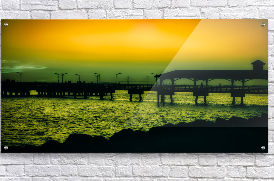 Sunset with a green haze captured in Infrared showing the Saint Simons Island Pier with the Sidney Lanier Bridge in the background captured in full sp...[+]