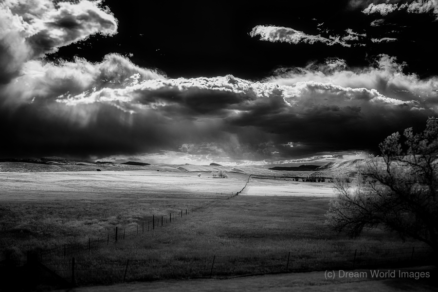 This is what freedom looks like - an endless Wyoming fencline disappearing into storm clouds and infinite possibility. The infrared treatment transfor...[+]