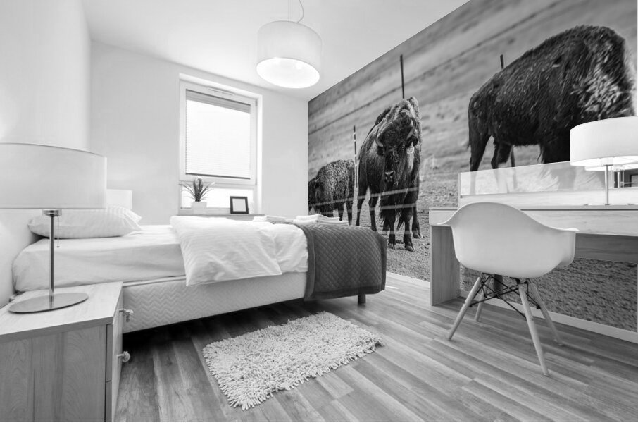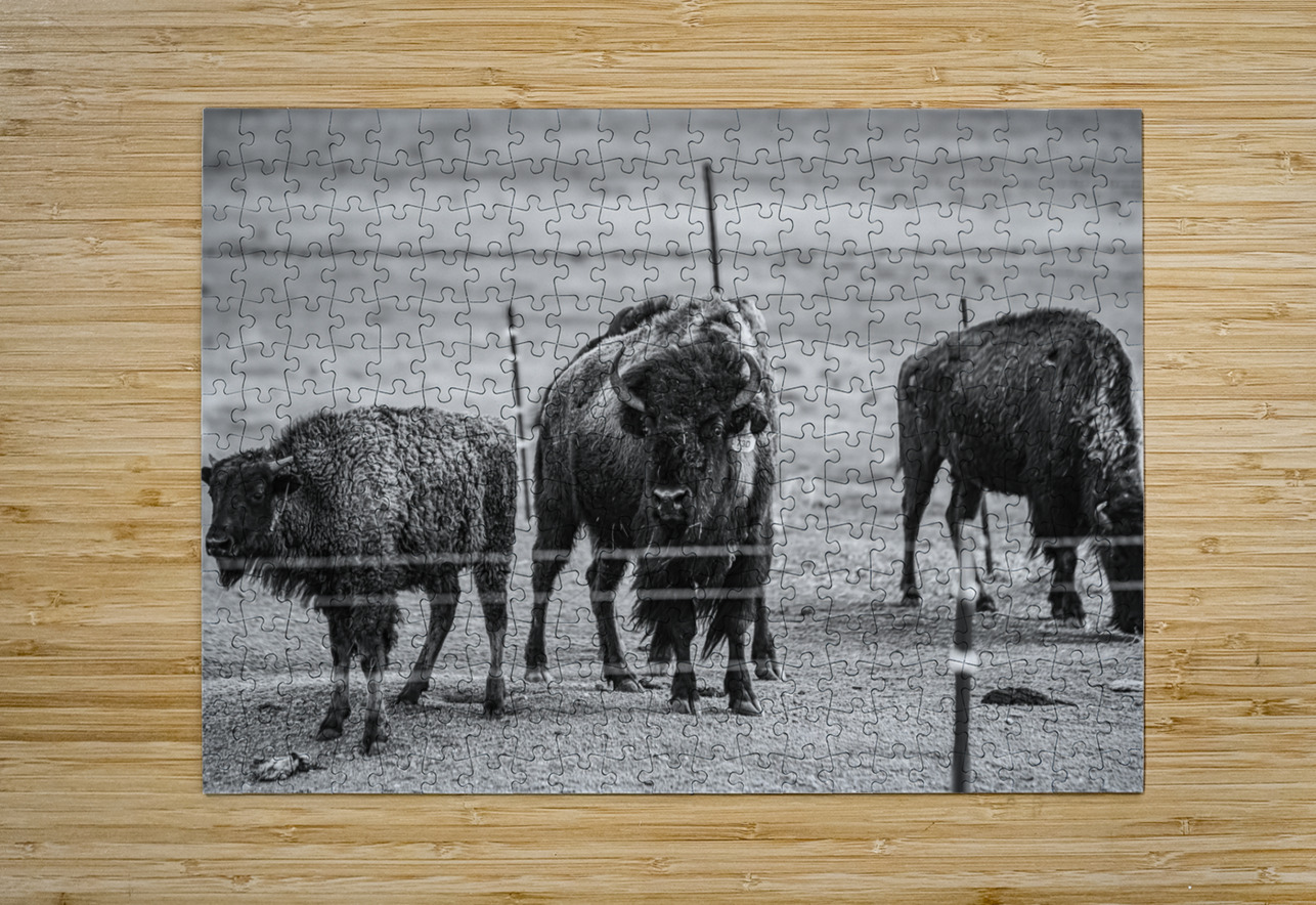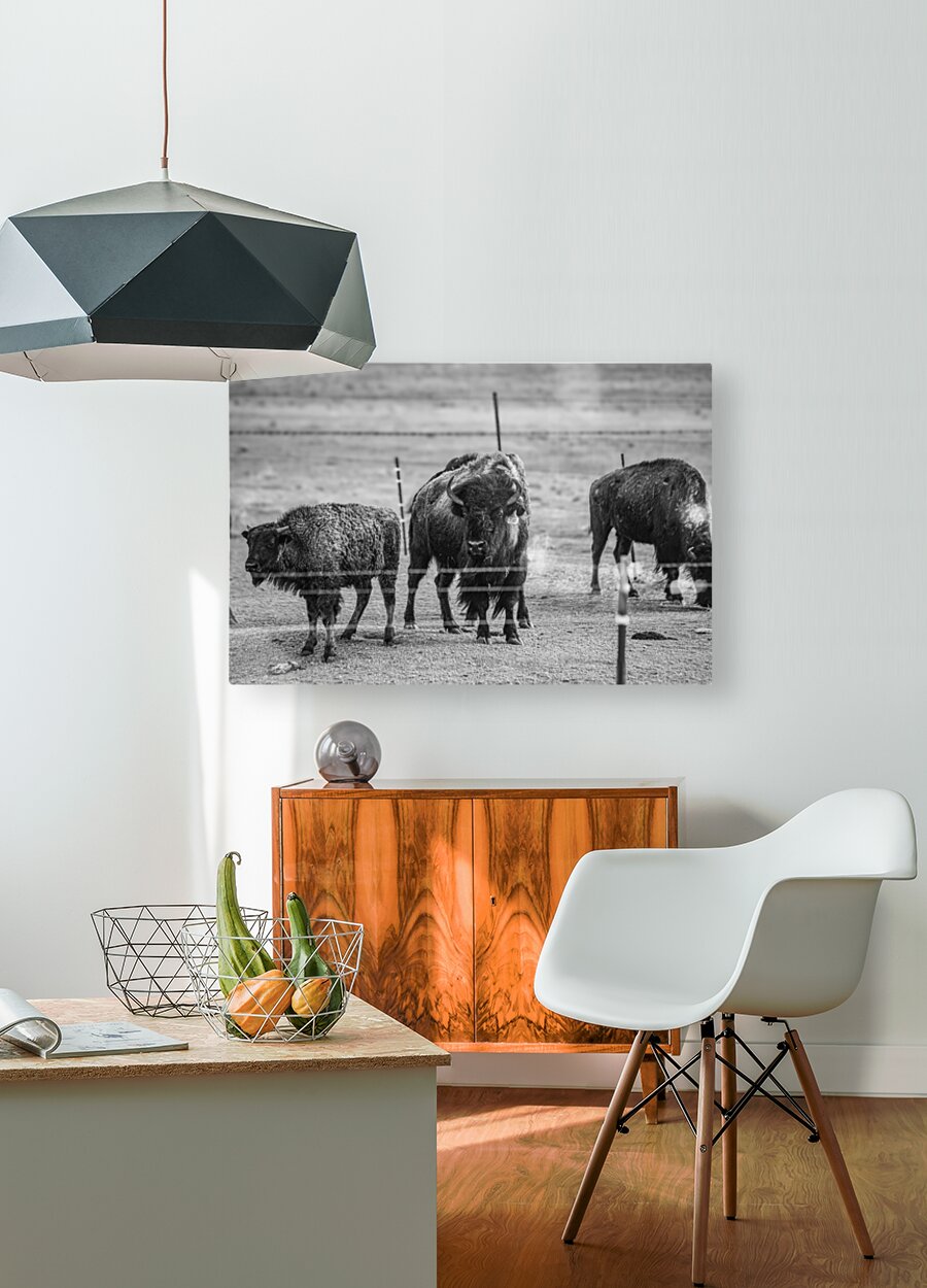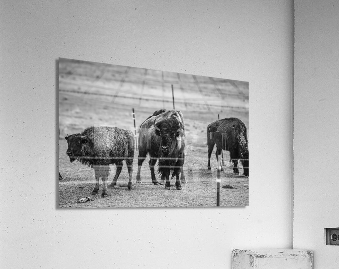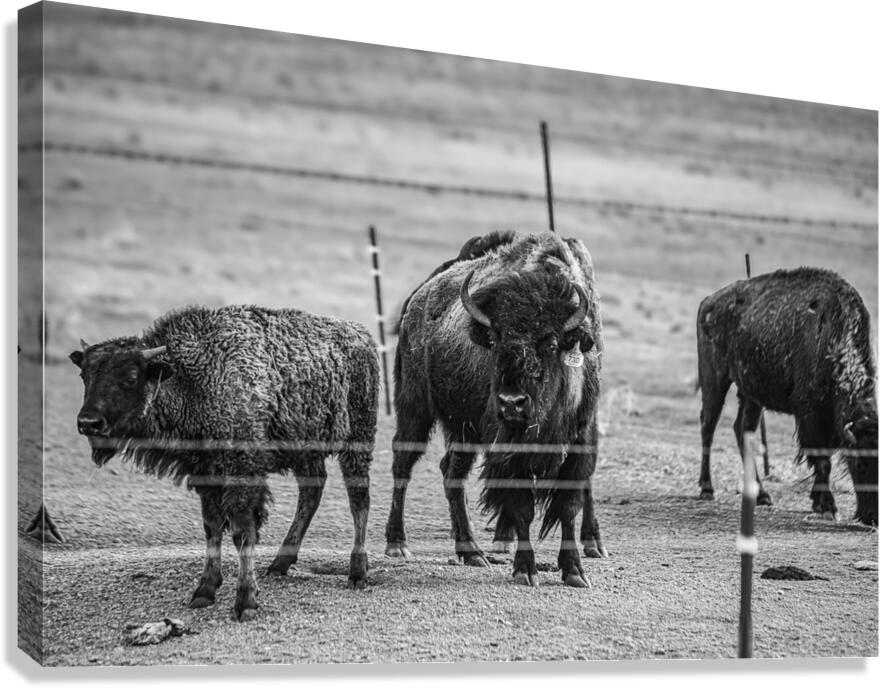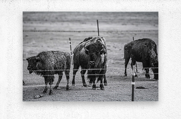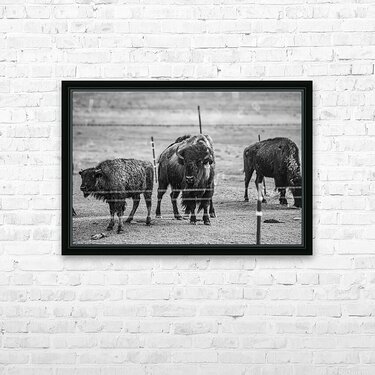 Immerse yourself in the raw beauty of nature with my latest artwork, "Wild Essence Captured." This awe-inspiring black and white photograph showcases the regal presence of three magnificent bison. At the center of the composition stands a commanding bison, locking eyes with you with a gaze that exudes strength and resilience. I expertly captured the intricate details of its fur coat, highlighting the animal's rugged beauty. In the background, two additional bison peacefully graze, emphasizing the vastness of their untamed habitat. This captivating artwork captures the essence of these iconic creatures and invites you to connect with the untamed wilderness. The image radiates a sense of adventure and freedom, evoking a feeling of being one with nature. Bring the spirit of the great outdoors into your living space with this striking piece that embodies the wild soul of the bison.