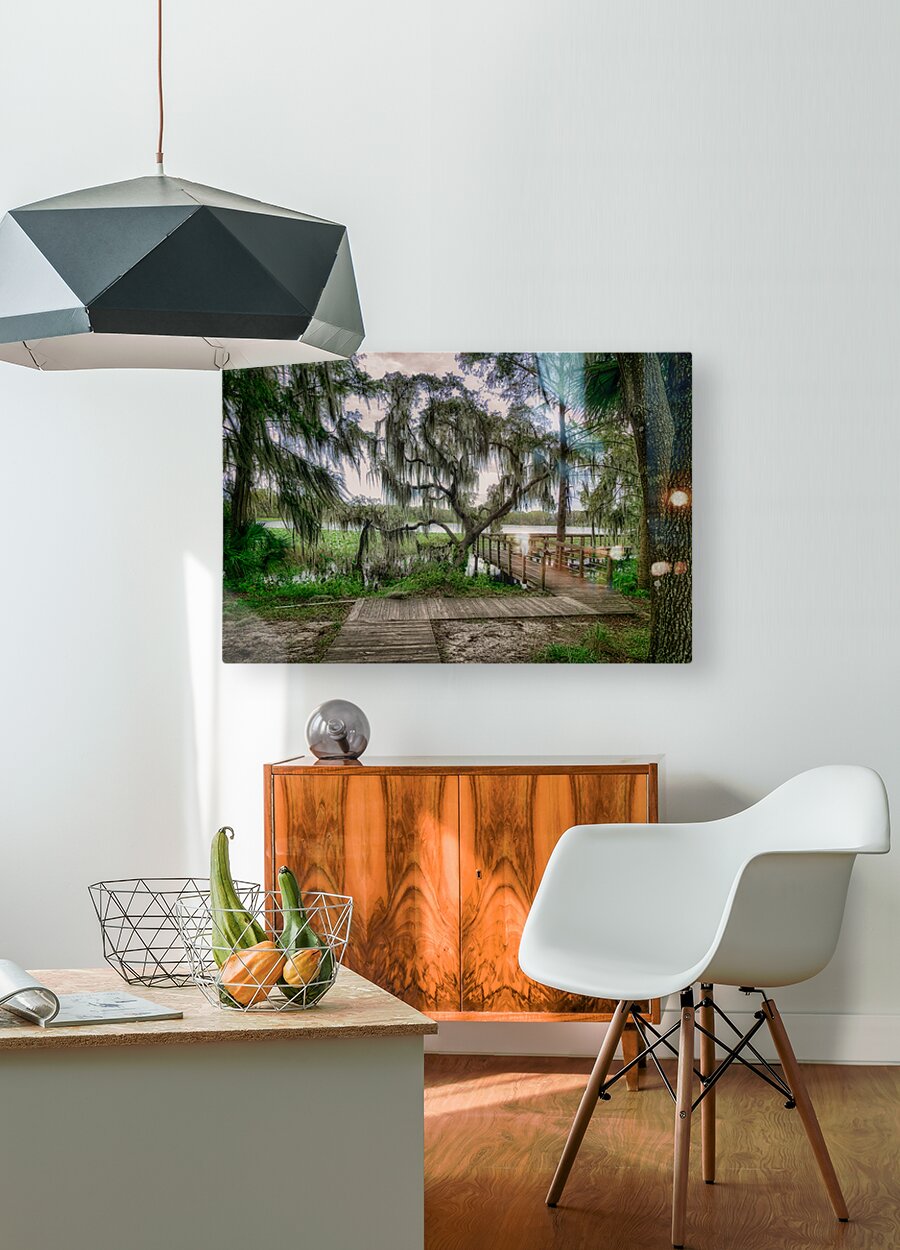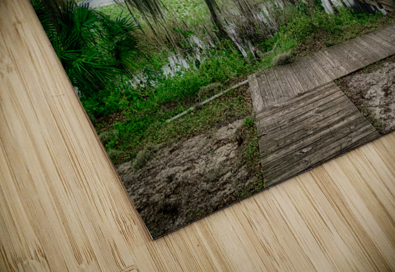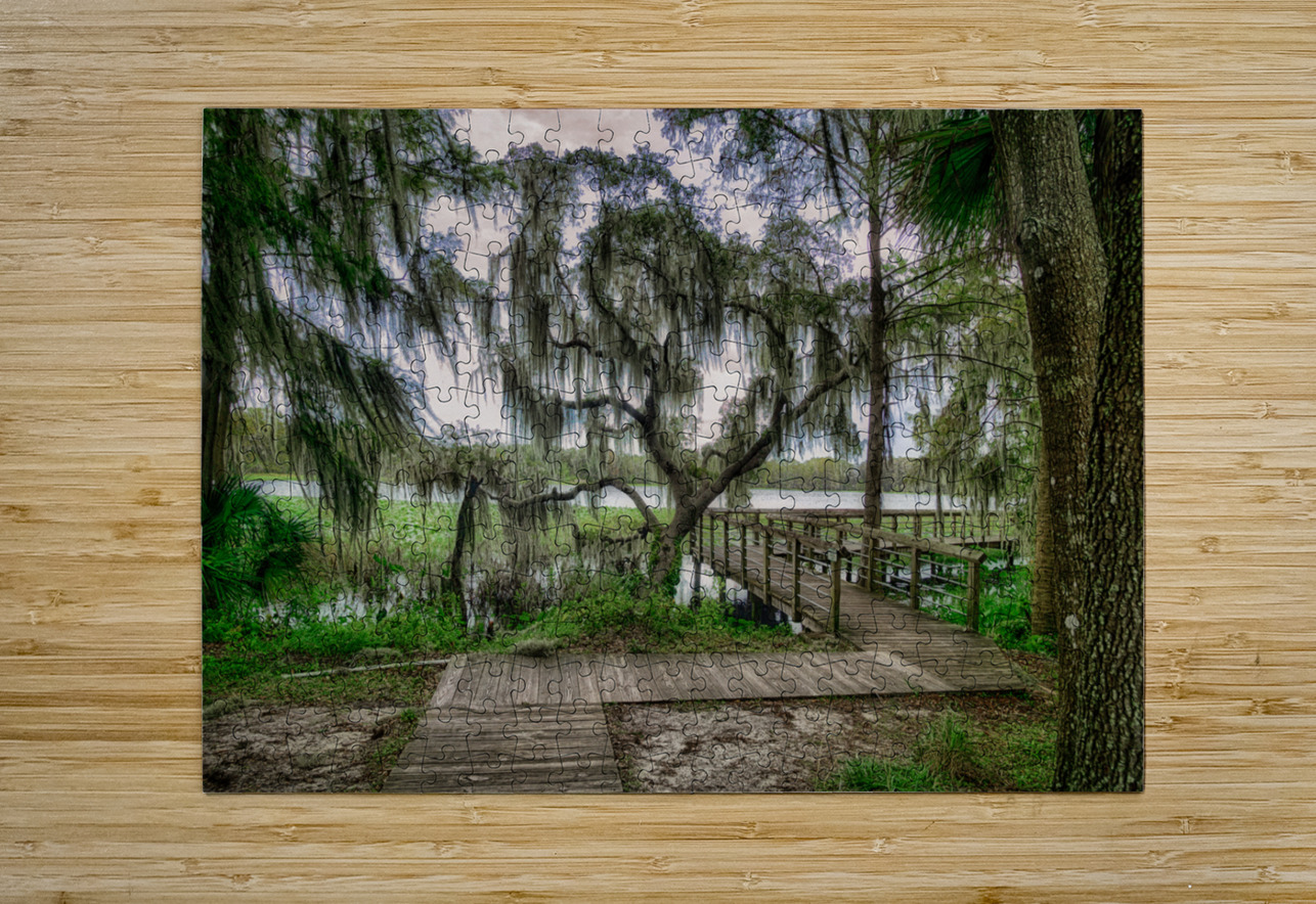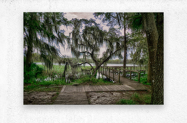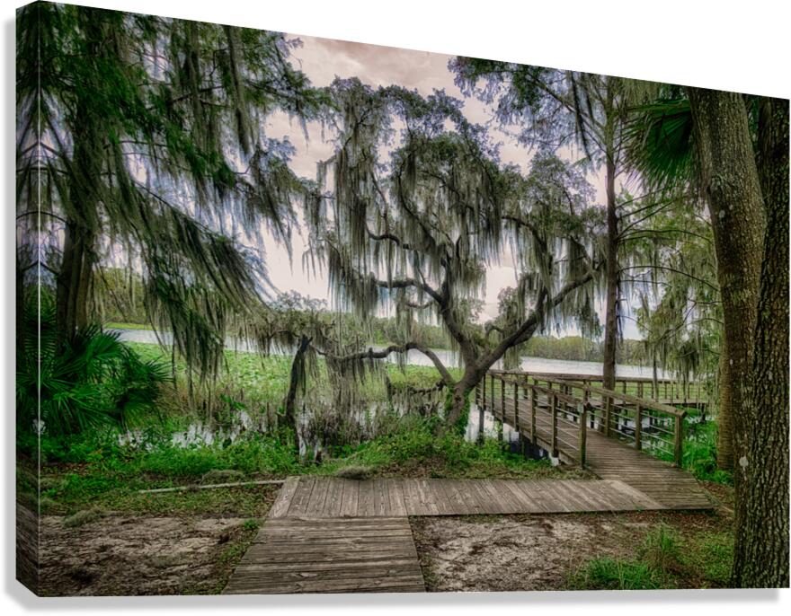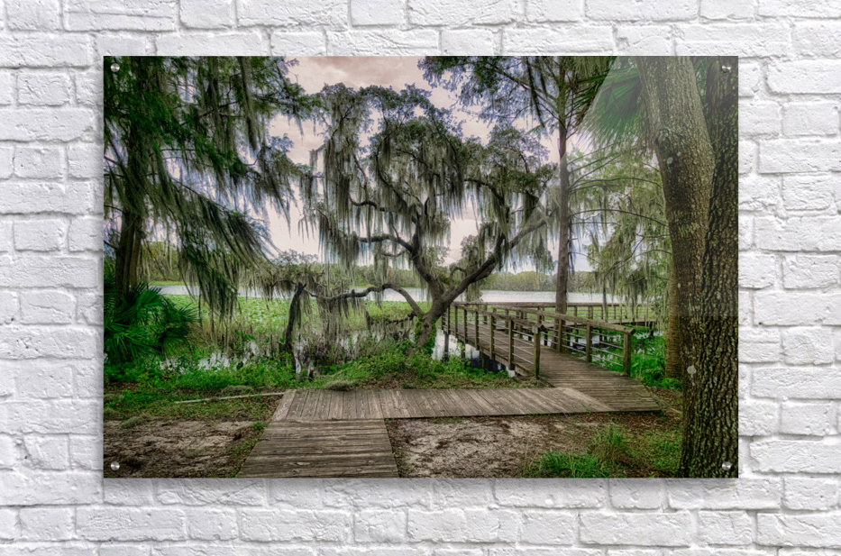 A boardwalk around Spanish moss in Inverness Florida.