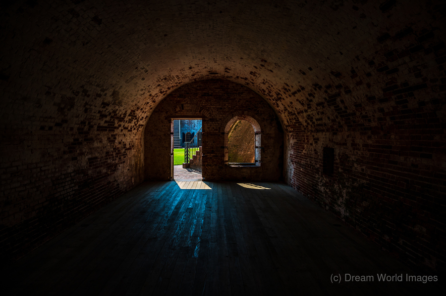 Step into a realm where time stands still, where ancient walls whisper secrets of days long past at Fort Macon, North Carolina. Between Worlds beckons you to wander through a dimly lit corridor within the historic fort, the play of light and shadow revealing the rich texture of weathered bricks that have withstood the test of time. As you pass through the passage, a bright light at the end draws you towards a tantalizing glimpse of the outside world beyond the fort's walls. Traverse this enigmatic space and feel the weight of history pressing down on you, urging you to contemplate the mysteries concealed within these old walls of Fort Macon. The archways, the wooden floor, and the interplay of darkness and light - all beckon you to embark on a journey of discovery within this historic site. The echoes of soldiers long gone seem to linger in the air as you immerse yourself in the stories of the past that are intricately woven into the very fabric of Fort Macon. Embark on this journey Between Worlds at Fort Macon, where the intertwining of the past and present creates a captivating atmosphere that invites you to explore and ponder the significance of history in shaping our world today.