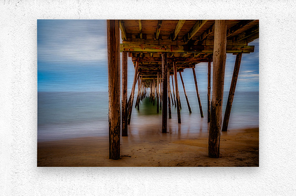 Beneath the weathered pier, time seems to pause as gentle waves create a dreamy haze around ancient pilings. Through long exposure photography, the ocean's constant motion transforms into a mystical fog, while the wooden pillars stand like silent sentinels marking nature's rhythm. Part of the "Serenade of Light" collection, this image captures the meditative dialogue between permanence and change, where each wooden post tells stories of countless tides and timeless moments.