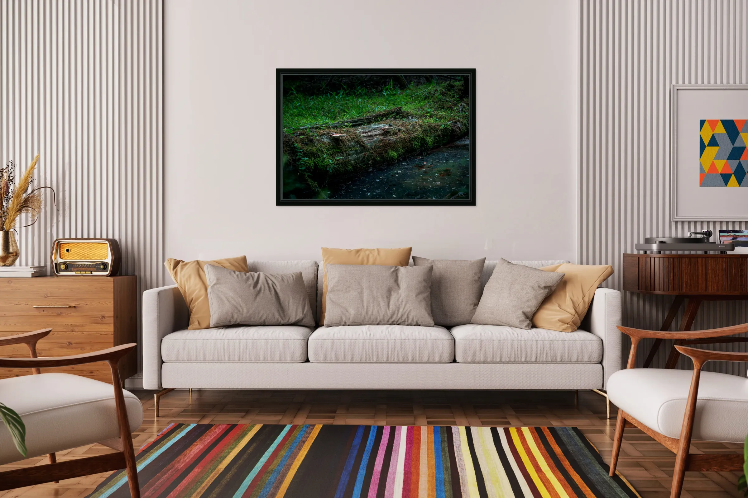Imprimé jusqu’au bord et prêt à être accroché, avec un cadre flottant à l’arrière.