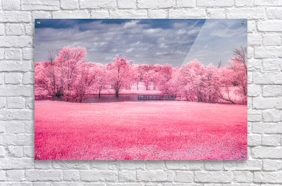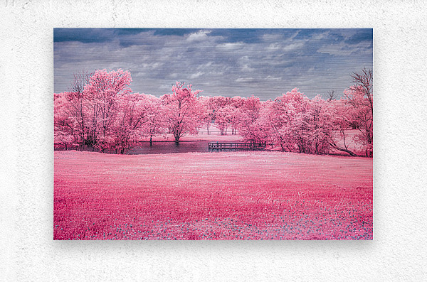 One cloudy day, my wife and I decided to take a leisurely drive around the charming town of Bridgeport, Texas. As we cruised along the country roads, admiring the rolling hills and quaint scenery, we came across a picturesque sight—a vast field alongside the road adorned with a pretty pond and colorful wildflowers just beginning to bloom. Despite the light drizzle that had begun to fall, I couldn't resist the urge to capture the beauty of the scene before us. Parking the truck by the roadside, I grabbed my camera. I stepped out into the misty air, leaving my wife cozily seated inside to enjoy the view from the warmth of the vehicle. As I ventured into the field, the raindrops danced lightly on my skin, adding to the sense of tranquility that enveloped the landscape. With each click of the shutter, I immortalized the scene in a soft pink infrared hue, capturing the wildflowers' ethereal beauty and the pond's serene stillness. Despite the rain, my spirits were lifted by the sheer beauty of nature surrounding me. And though my wife remained in the comfort of the truck, I knew she shared in my appreciation for the wonders we had discovered on our rainy day excursion through Bridgeport, Texas.