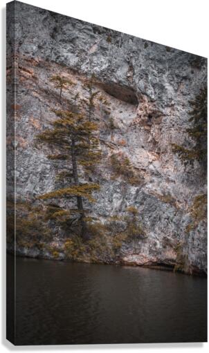 A pine tree hanging on at the edge of a rock outcrop on the Missouri River.